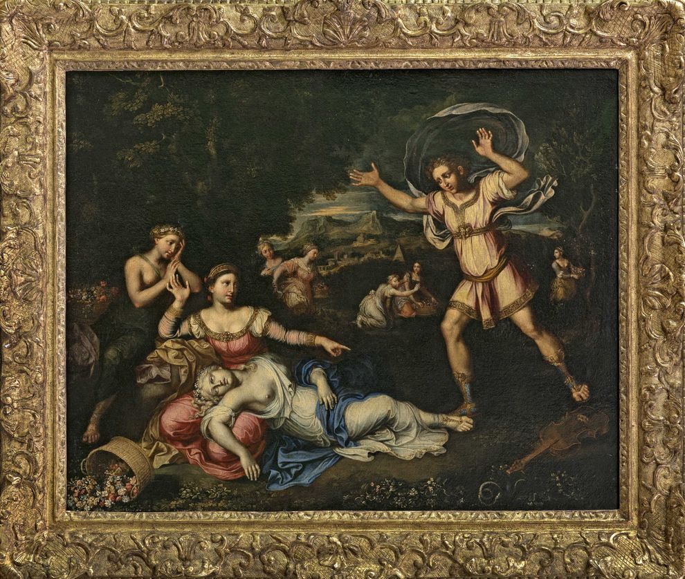 Réalisée en 1654, peu de temps après l’arrivée du jeune Lorrain à Rome, Orphée et Eurydice est la plus ancienne œuvre connue de l’artiste. Le sujet est tiré des Métamorphoses d’Ovide : Eurydice vient de mourir, mordue par un serpent, le jour de ses noces avec le musicien Orphée. Celui-ci, épouvanté, se précipite vers la jeune femme. Tout dans la composition semble être une démonstration des savoir-faire multiples de l’artiste : la nature-morte du premier plan, la figure d’Eurydice inspirée de l’Antiquité, celle d’Orphée traitée de façon disproportionnée mais révélant une bonne connaissance anatomique, les plissés des vêtements, le paysage à l’arrière-plan constitué de ruines, de montagnes et dans lequel s’intègrent harmonieusement plusieurs personnages. On a ainsi l’impression que Nicolas de Bar, pour s’attirer les faveurs d’un commanditaire potentiel, a souhaité montrer toute sa science dans cette œuvre, expliquant ainsi son aspect composite et éclectique. Cette œuvre de jeunesse annonce stylistiquement les réalisations que Nicolas de Bar peint ensuite pour les églises romaines.