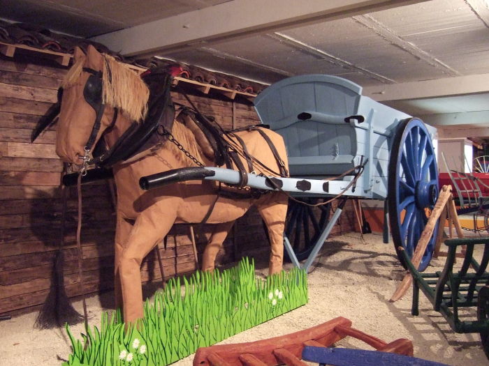 Le second site « La boutique du charron « , à 200 mètres du premier et au cœur du village, est le lieu de travail d’origine d’un des derniers charrons de la région. Laissées en l’état, les machines fonctionnent encore. Vous y découvrirez le matériel indispensable pour l’entretien des charrues et autres outils agricoles mais aussi le matériel pour les chevaux.