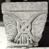 Chapiteau semi-engagé à décor de masques et cordons