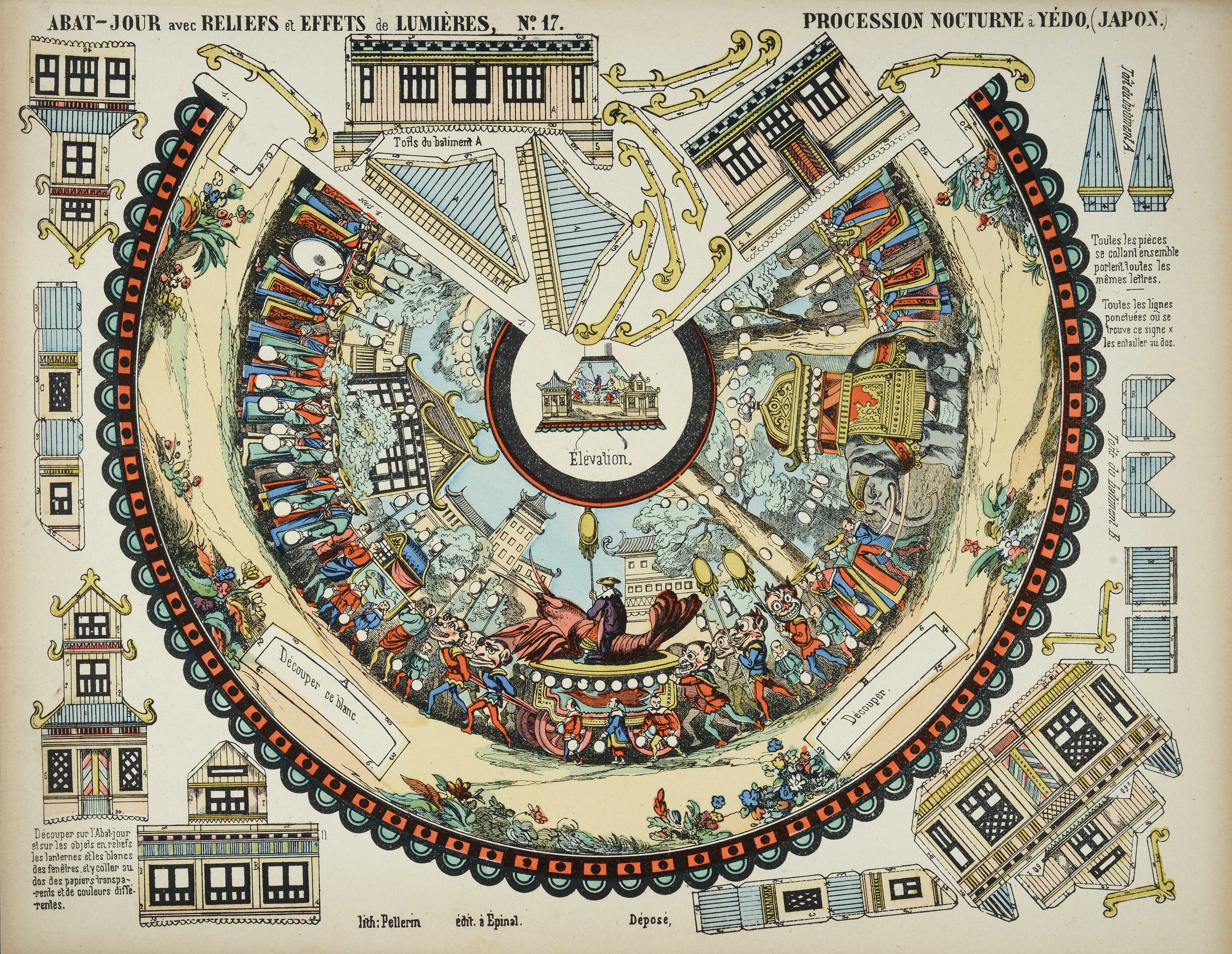 Titre : Abat-jour avec reliefs et effets de lumières, n°17. Procession nocturne à Yédo (Japon)