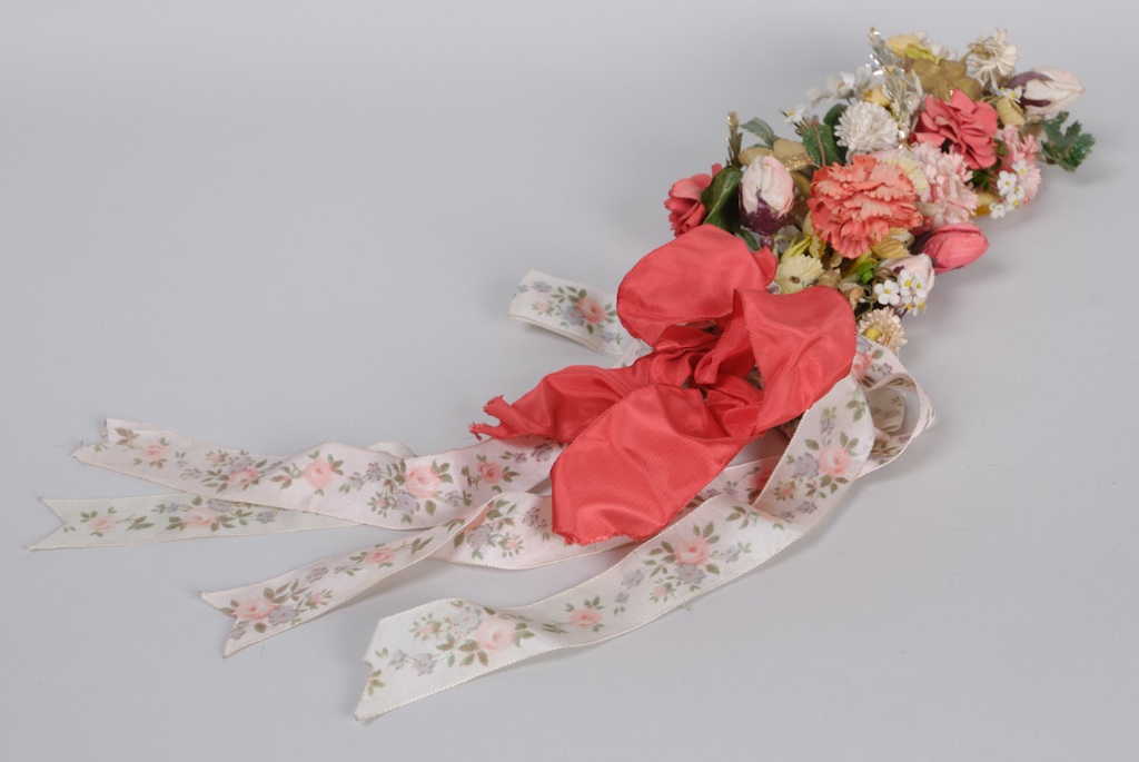 Bouquet de fleurs en tissu d’un costume porté par le marié de Seebach