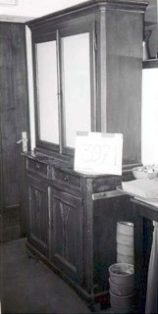 Avant 1850 on ne trouve quasiment pas de buffet dans les intérieurs ruraux alsaciens. C’est seulement à partir du XIXème siècle que les meubles destinés à ranger la vaisselle apparaissent dans le monde rural. Ce buffet est composé de portes à deux battants, dont deux vitrées sablées blanches dans la partie supérieure ainsi que deux tiroirs. Très souvent la partie haute sert de garde-manger , quant aux tiroirs on y range les couverts et les petits objets de la cuisine. La partie basse permet d’installer la vaisselle et éventuellement le linge de table. La niche centrale contient la vaisselle précieuse et les chandeliers. Cette pièce complète utilement les collections et les présentations muséographiques dont le thème est lié à l’habitat, l’évolution ou les caractéristiques du mobilier.