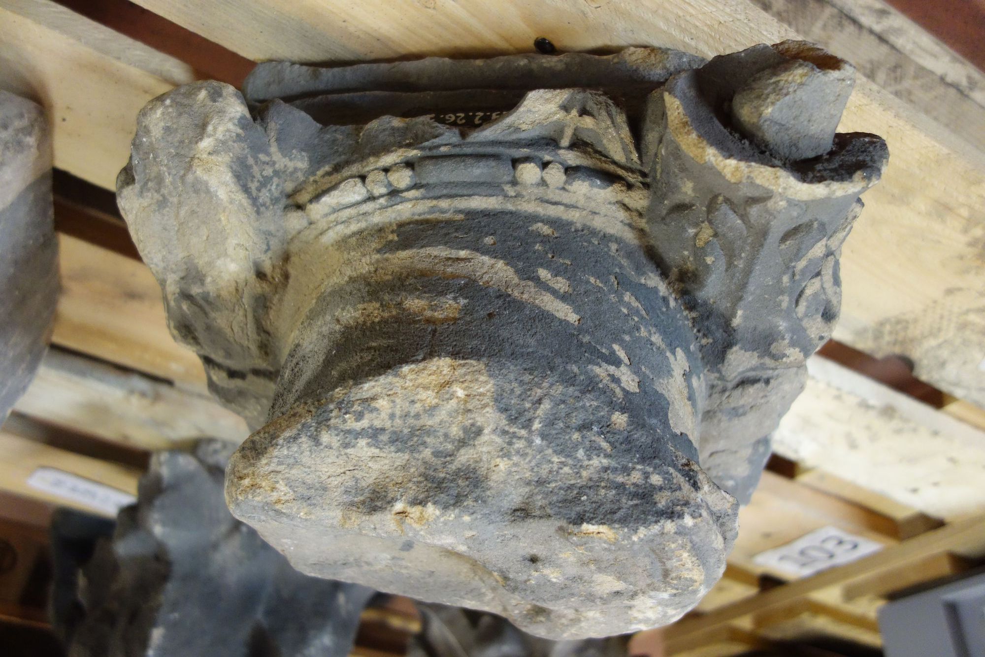 Chapiteau de type ionique à volutes de la Renaissance avec décors de feuilles d’oves et frise de perles. A comparer avec le 22.995.0.462.