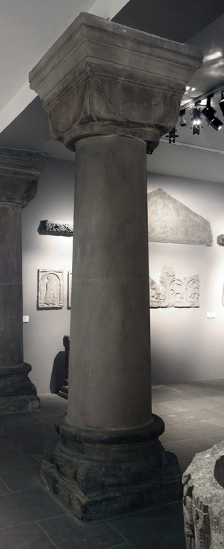 Ces huit colonnes à chapiteaux cubiques proviennent de la nef de l’ancienne église romane de Mutzig, démolie en 1878. Les colonnes ont été intégrées dans les collections du musée en 1954.