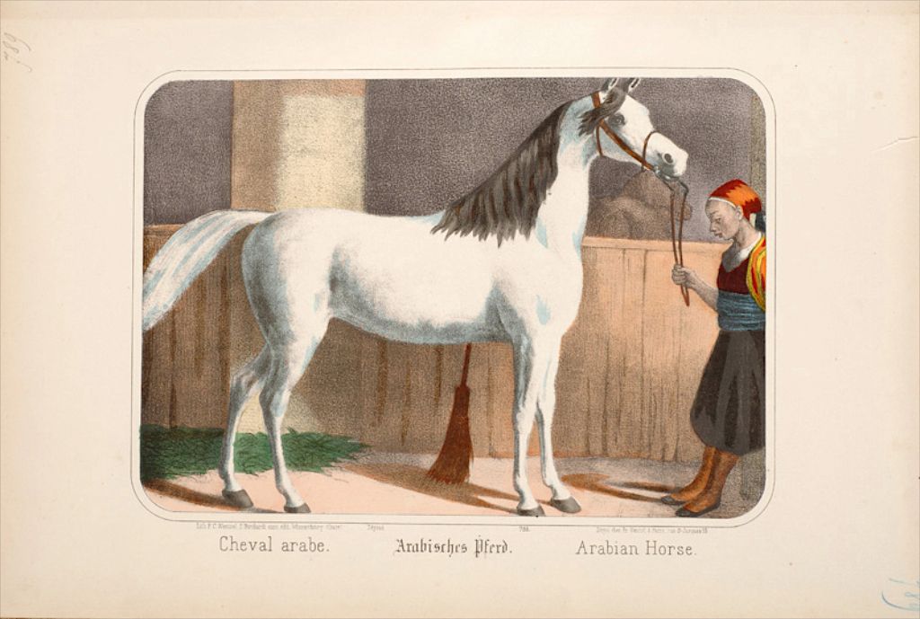Titre : Cheval arabe. (titre inscrit, français, allemand, anglais)
