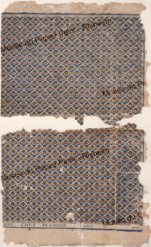Matière et technique : Imprimés à la planche et colorés au pochoir.