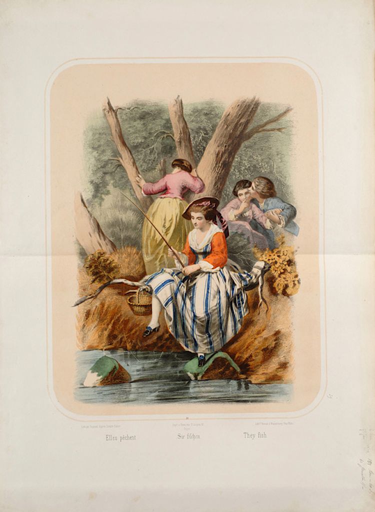Titre : Elles pêchent. (titre inscrit, français, allemand, anglais)