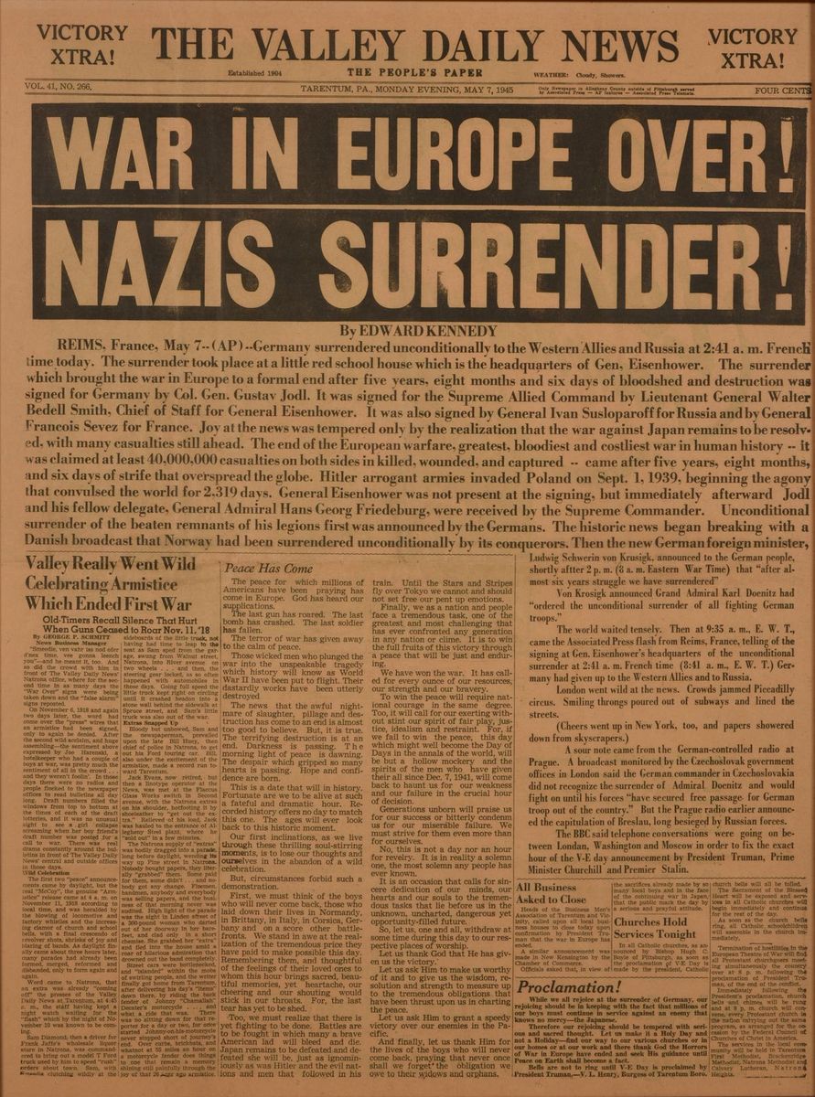 Exemplaire du Valley Daily News, 7 mai 1945, édition du soir