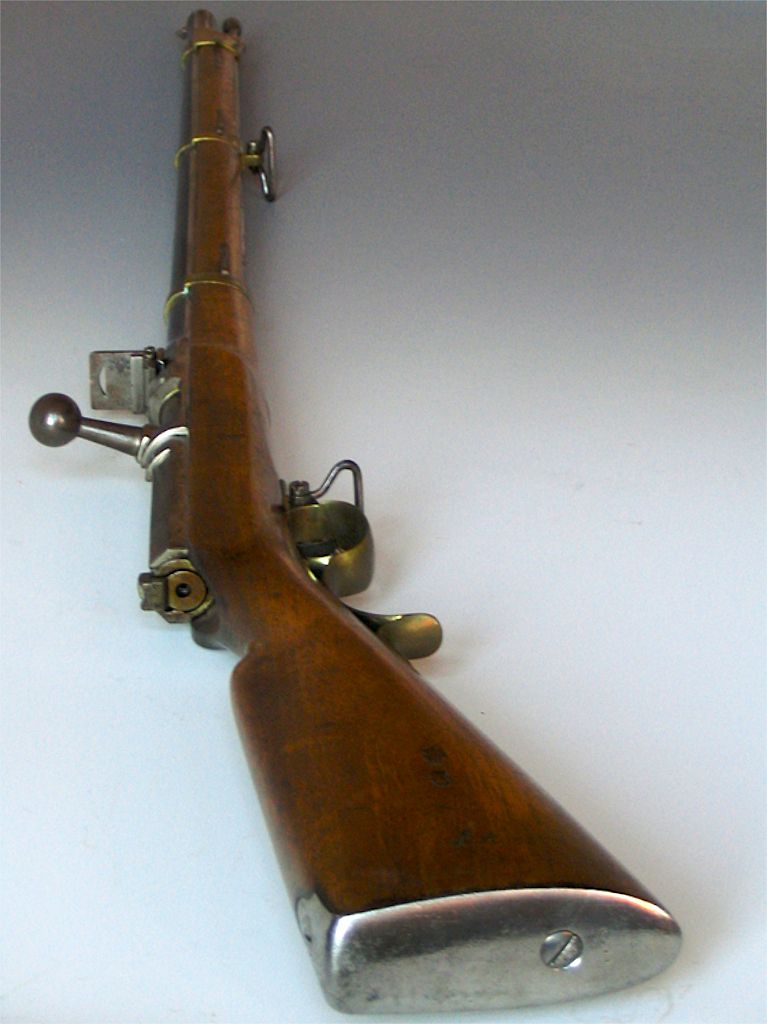 Arme à aiguille pourvue d’une culasse mobile, le levier d’armement est droit et se termine par une boule, la monture est d’une seule pièce avec une grenadière, une capucine et un embouchoir, le canon rond est à 4 rayures au pas de 0,73 m, 2 battants de crosse, la hausse est à cran de mire fixe et deux feuillets pour une distance de 265 à 600 m, la hausse comporte également un évidement en forme de demi lune , le bout de la baguette est en forme de tête de tulipe.