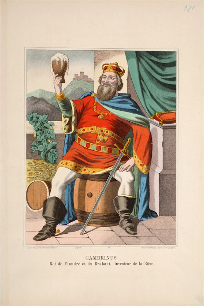 Titre : Gambrinus, Roi de Flandre et du Brabant, Inventeur de la Bière. (titre inscrit, français)