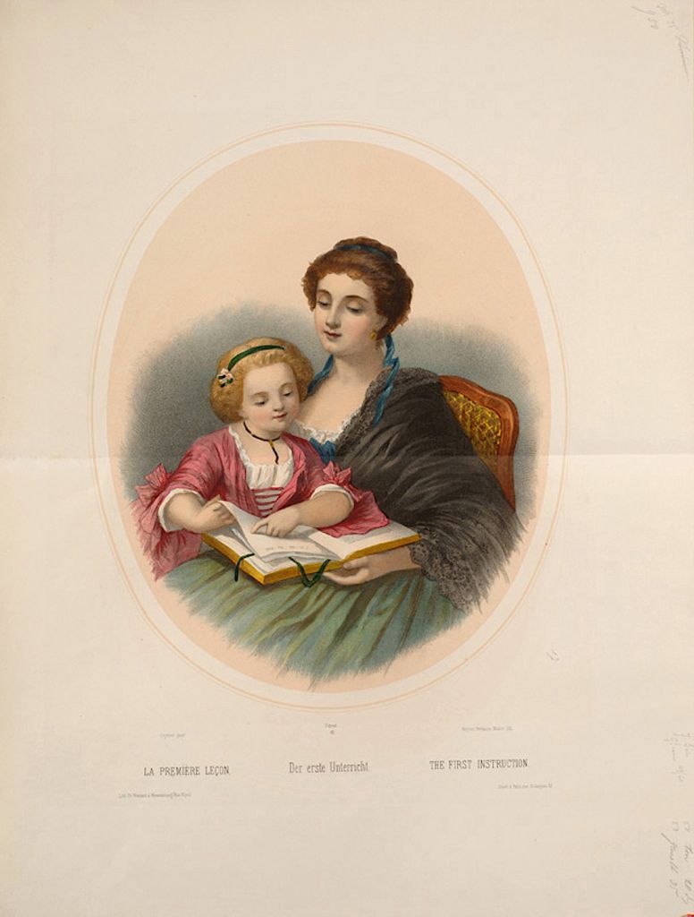 Titre : La première leçon. (titre inscrit, français, allemand, anglais)