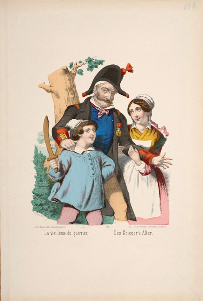 Titre : La vieillesse du guerrier. (titre inscrit, français, allemand)