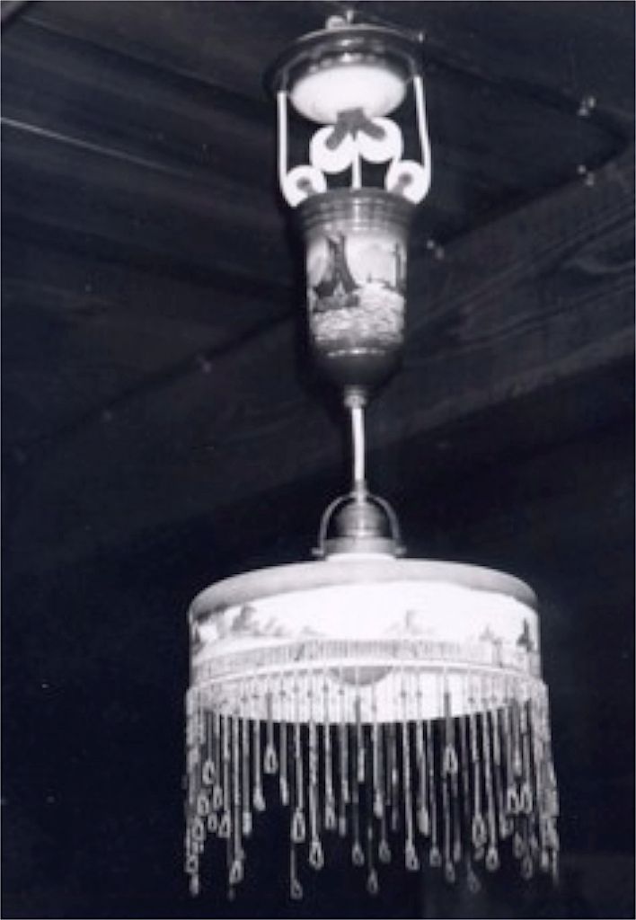 L’Ecomusée d’Alsace acquiert en 1991 trois lampes à suspension pour compléter les reconstitutions muséographiques présentant les intérieurs ruraux alsaciens du XIXème et XXème siècles. Les abats-jour sont blancs, ou peints (cabane en bord de mer). Le système de suspension est décoré: à fond bleu et blanc (une vache est dessinée à proximité d’une ruine de château), ou à fond jaune et bleu.