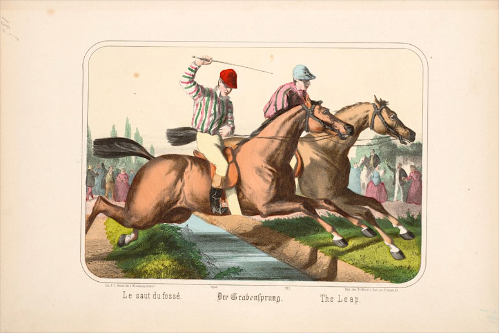 Le saut du fossé. (titre inscrit, français, allemand, anglais)