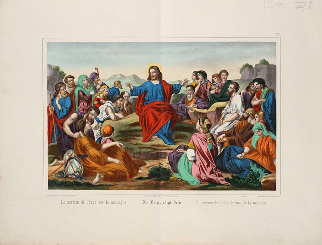 Titre : Le sermon de Jésus sur la montagne. (titre inscrit, français, allemand, espagnol)