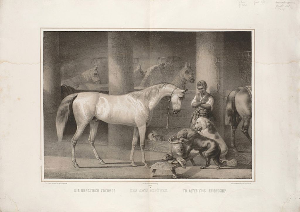 Titre : Les amis altérés. (titre inscrit, français, allemand, anglais)