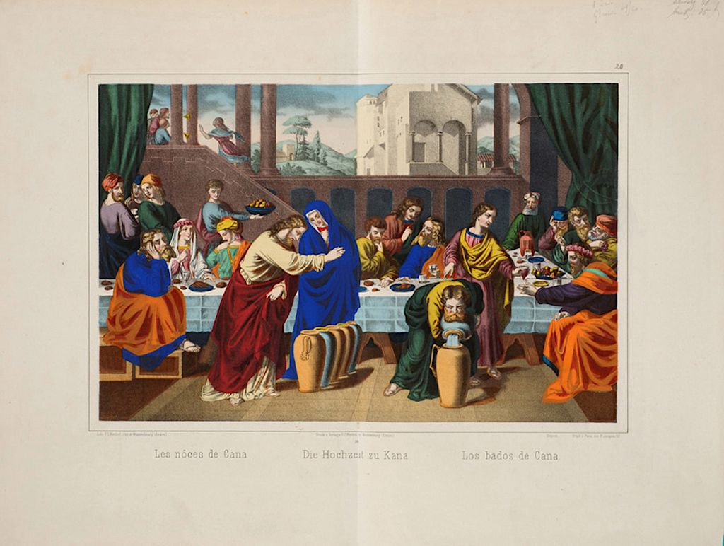 Titre : Les noces de Cana. (titre inscrit, français, allemand, espagnol)
