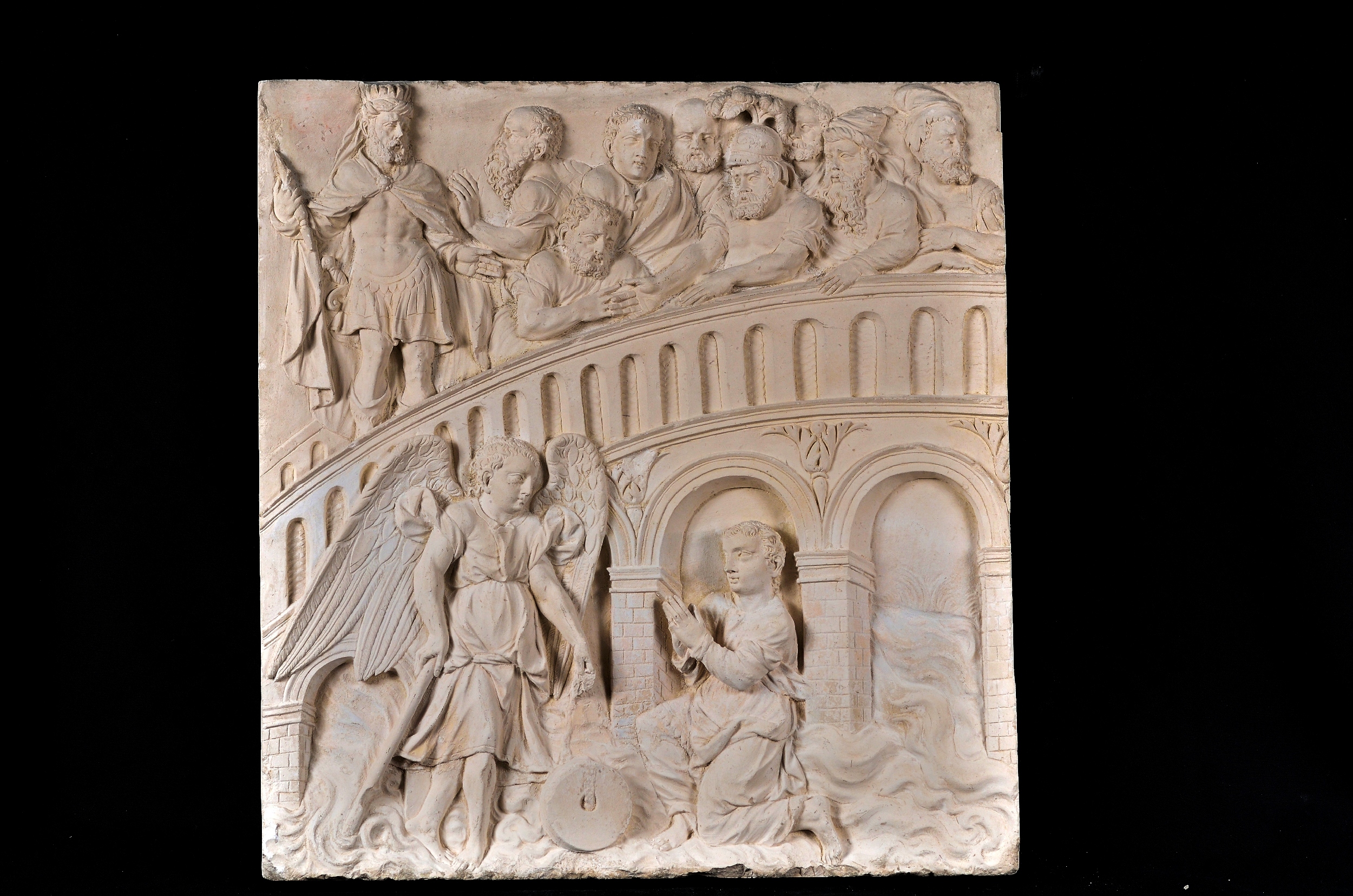 « Le cycle de saint Mammès », regroupe un ensemble de sept panneaux sculptés en pierre de Tonnerre provenant de la chapelle éponyme de la cathédrale de Langres. La chapelle Saint-Mammès s’élevait contre un pilier de la nef, côté nord, face au jubé. Détruite lors de l’incendie de la cathédrale du 18 avril 1562, cette chapelle est reconstruite par le chanoine Nicolas Petit suite à l’accore de l’assemblée canoniale du 11 décembre 1564. Elle se composait d’un autel coiffé d’une statue du saint qui surmontait « de très beaux bas-reliefs en pierre blanche représentant son martyre ». Les bas-reliefs représentant « L’Ascendance chrétienne de Mammès » et « La Naissance de Mammès » furent conservés au remontage de la chapelle. L’iconographie de ce bas-relief s’inspire de celle de la tapisserie « Saint Mammès sauvé de la noyade fait surgir les Évangiles ».