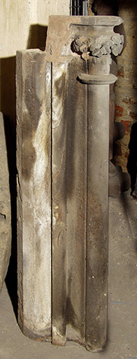 Titre : Partie supérieure d’un meneau avec trois colonnettes engagées et chapiteau à feuillage