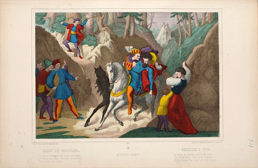 Titre : Mort de Gessler. (titre inscrit, français, allemand, anglais)