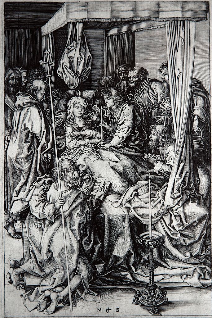 Le Beau Martin. « Gravures et dessins de Martin Schongauer (vers 1450-1491) », Colmar, musée d’Unterlinden, 13 septembre-1er décembre 1991, n° G 9, p. 266, ill p. 267 , « Spätmittelalter am Oberrhein. Alltag, Handwerk und Handel. 1350-1525 », Karlsruhe, Badisches Landesmuseum, 29 septembre 2001-3 février 2002, n° 301 , « L’Assomption, peinture picarde de la fin du 15e siècle », Abbeville, musée Boucher-de-Perthes, 15 février-18 mai 2003, p. 72, n°13, ill p.14 , « Figures de madones. Vierges sculptées du 12e au 16e siècle », Colmar, musée d’Unterlinden, 18 juin-18 septembre 2005, cat XI, ill p 13.