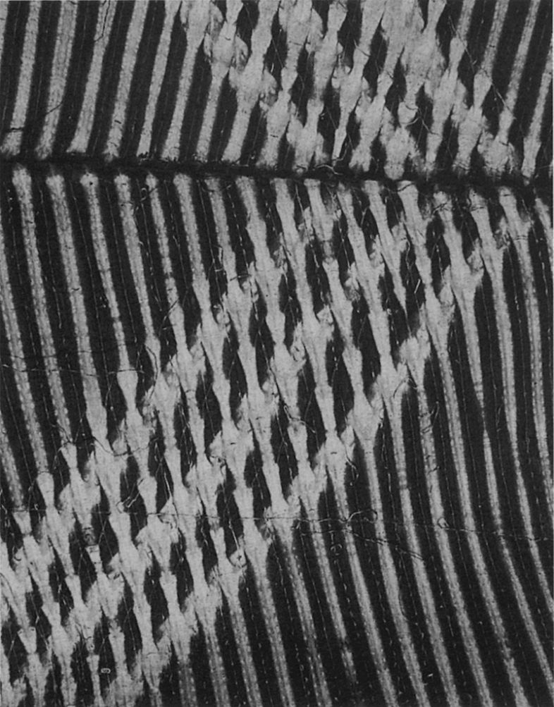 Titre : Pagne. Dessin quatre diagonales formant des triangles.