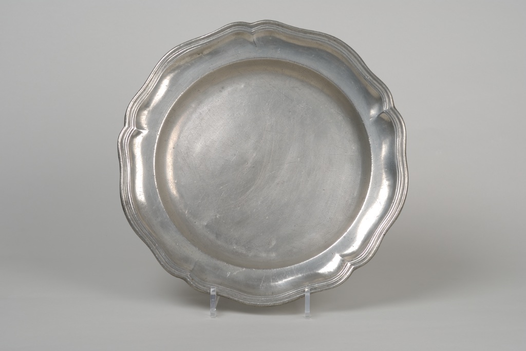 Plat rond, façon argent en étain. Jean Isenheim, Strasbourg, 2ème moitié du 18è siècle.