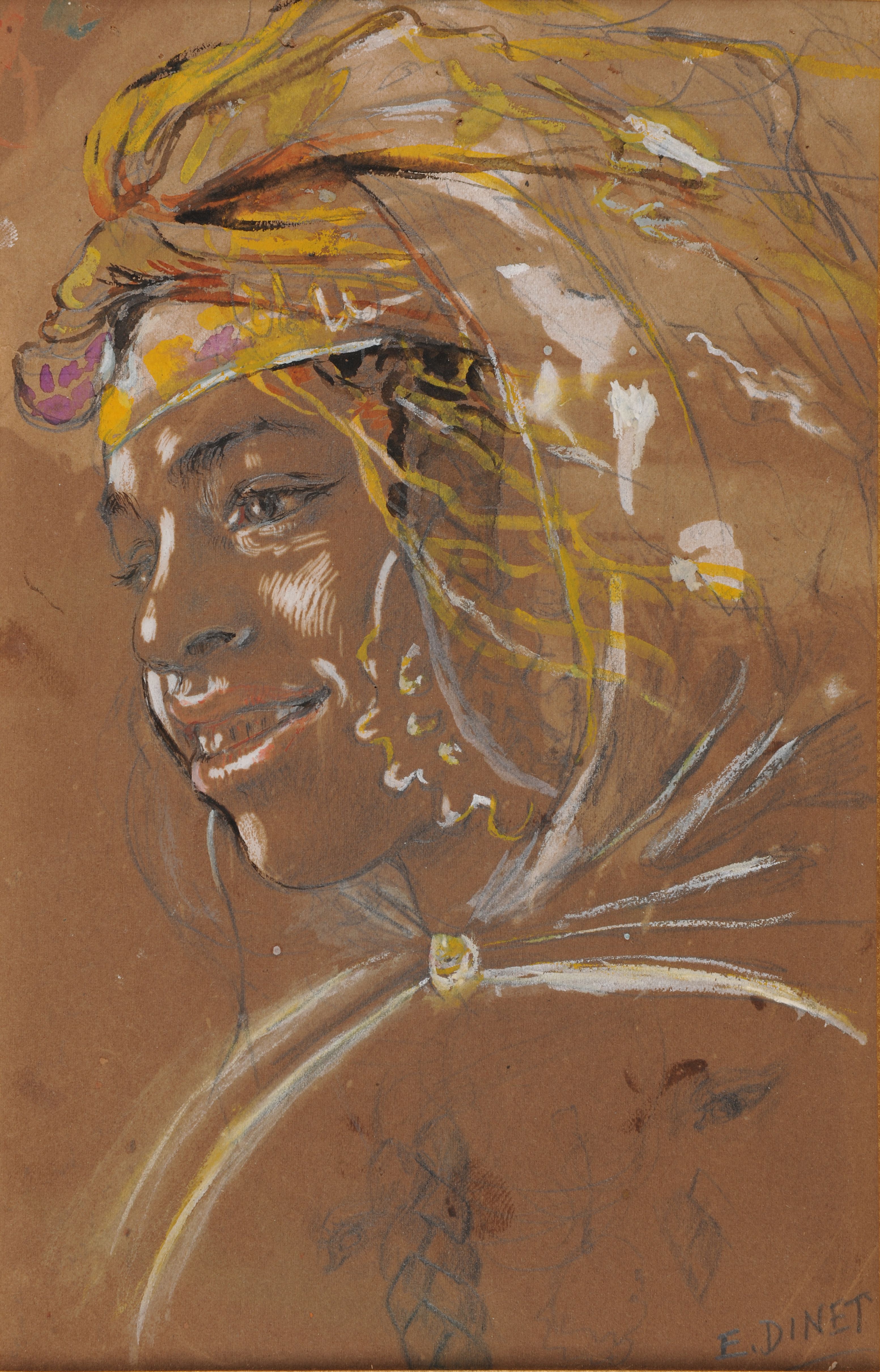 Etienne Dinet est littéralement séduit par l’Orient. Après de nombreux séjours, il finit par s’installer à Bou Saâda, au sud d’Alger, en 1905, et se convertit à l’Islam. En tant qu’artiste orientaliste engagé, son œuvre révèle moins un Orient fantasmé qu’un désir de connaissance de la culture musulmane.