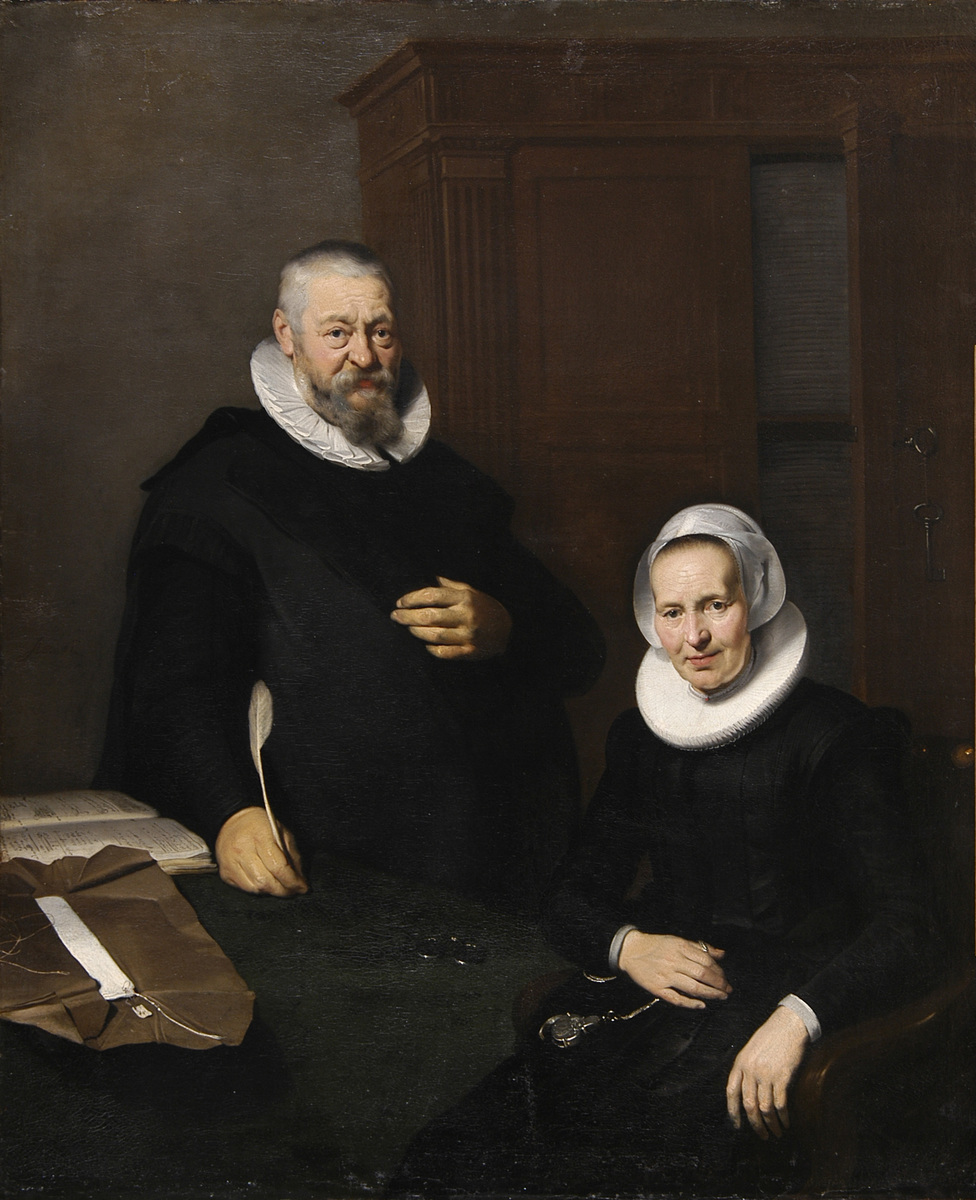 Cette toile fut dans un premier temps attribuée à Frans Hals, autre portraitiste avec lequel Backer est souvent confondu. Elle figure un couple de protestants hollandais, seul portrait double aujourd’hui connu de l’artiste. Celui-ci a fait preuve d’une grande finesse dans le traitement des couleurs et du clair-obscur ; la lumière apportée aux visages, aux mains et à certains objets posés sur la table contraste avec la tonalité sombre qui se dégage du tableau.