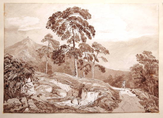 Matière et technique : lavis brun sur papier