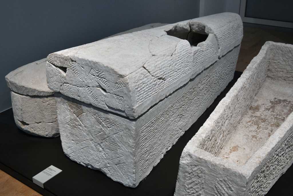 Découvert au cœur d’une nécropole mérovingienne de la Marne, ce sarcophage calcaire témoigne des pratiques funéraires de l’époque. De forme trapézoïdale, orné de stries et de croix gravées, il est fermé par un couvercle en arc de cercle. Ce type de sarcophage dit « bourguignon-champenois », propre à la région, est utilisé à partir du 6e siècle.