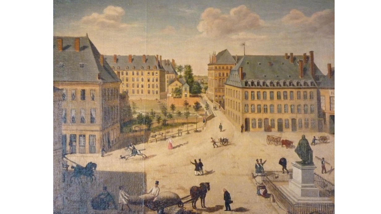 Félix PHILIPPOTEAUX, Sedan, place Turenne vers 1830, huile sur toile, collection Musée municipal de Sedan