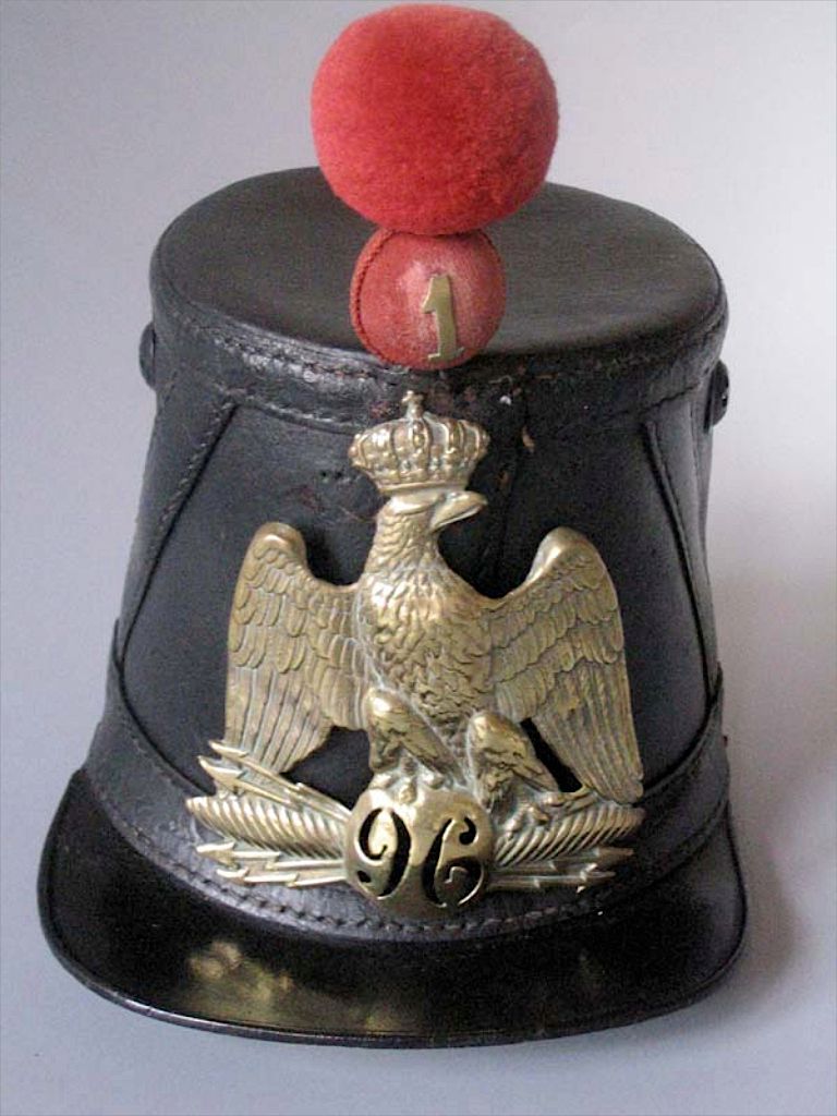 Titre : Shako d’infanterie (boîte à cirage), mle 1860.