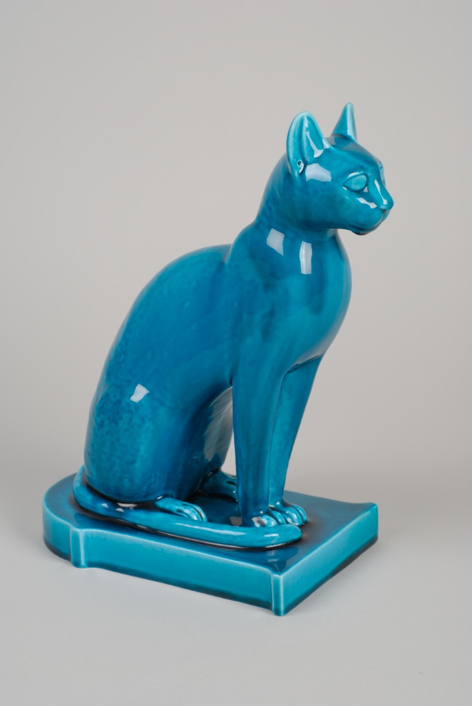 Chat assis d’inspiration égyptienne de couleur bleue Deck uniforme. Pièce assez rare.