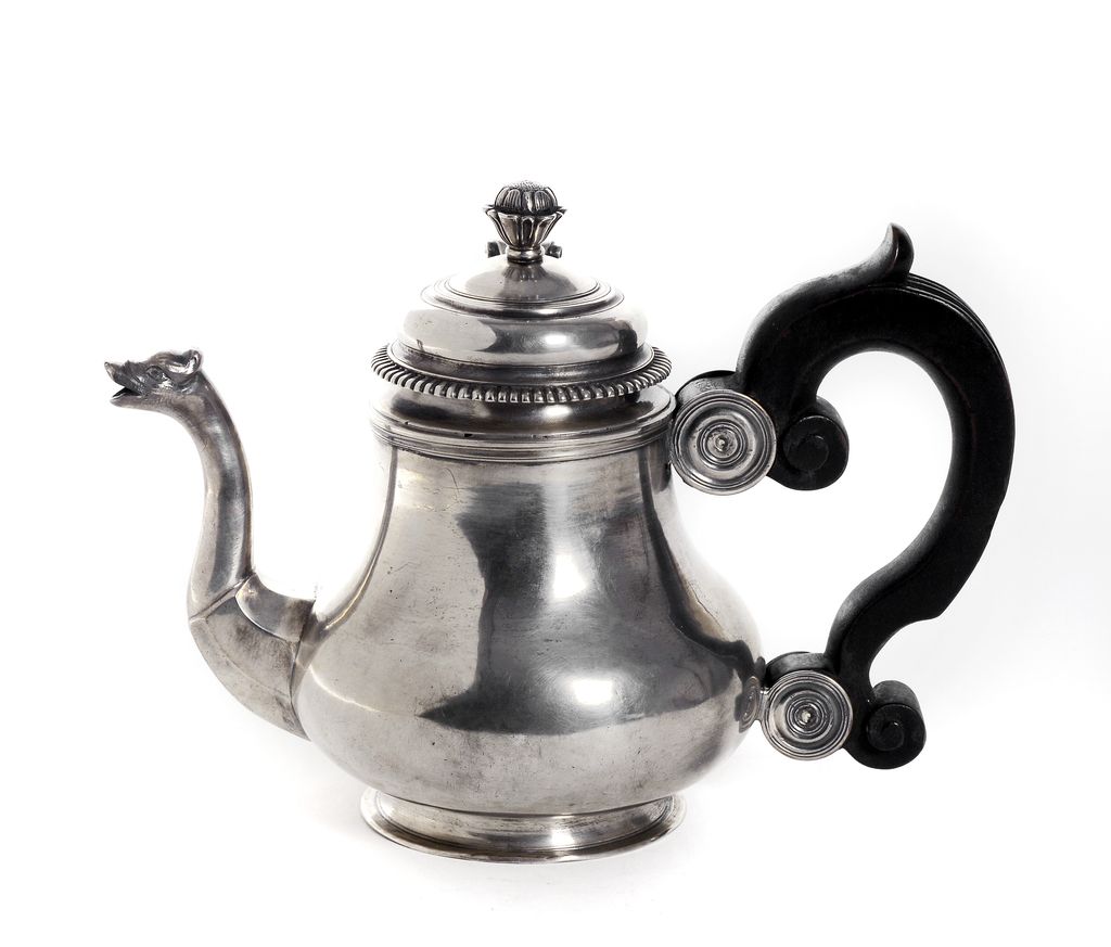 La théière porte le poinçon de Jean-Jacques Ehrlen, maître à Strasbourg en 1728, et le poinçon de contrôle de Strasbourg. Les premières théières en argent apparaissent en France après 1715. Cette pièce est la plus ancienne répertoriée pour Strasbourg.