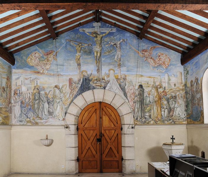Testament artistique de l’artiste franco-japonais Léonard Tsuguharu Foujita (1886-1968), la chapelle Notre-Dame-de-la-Paix a été conçue et entièrement décorée par lui entre 1965 et 1966. Le peintre fantasque de l’école de Paris, qui s’est converti au christianisme à Reims en 1959, y déploie son univers très personnel, mêlant sa culture japonaise aux références de la Renaissance italienne. Bénie en 1966, la chapelle est étroitement liée au musée des Beaux-Arts qui conserve une importante collection de l’artiste. Léonard Foujita et sa dernière épouse Kimiyo y sont inhumés.