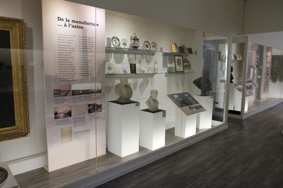 La visite débute dès le rez-de-chaussée avec un espace ludique visant à présenter la grande famille de la céramique et à mieux identifier la production de Sarreguemines. A l’étage une zone est consacrée à l’histoire de la manufacture, de sa création pendant la Révolution française à sa fermeture définitive en 2007, et à son évolution au cœur de la Ville de Sarreguemines.