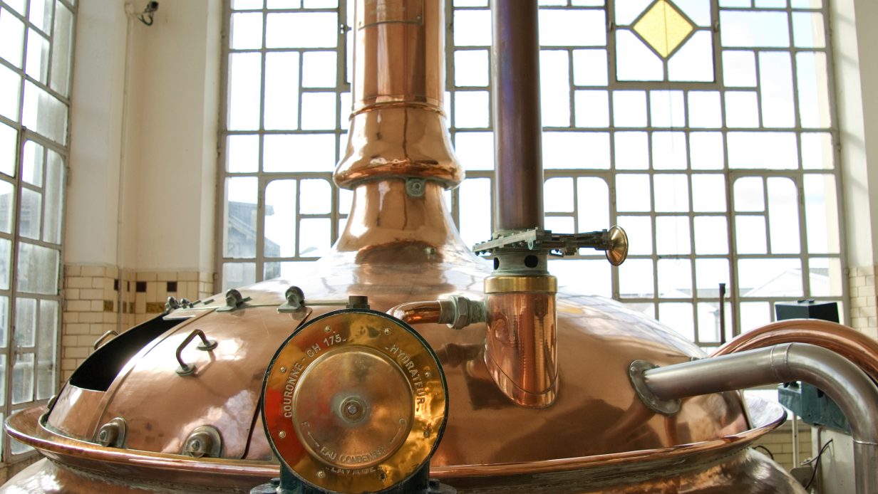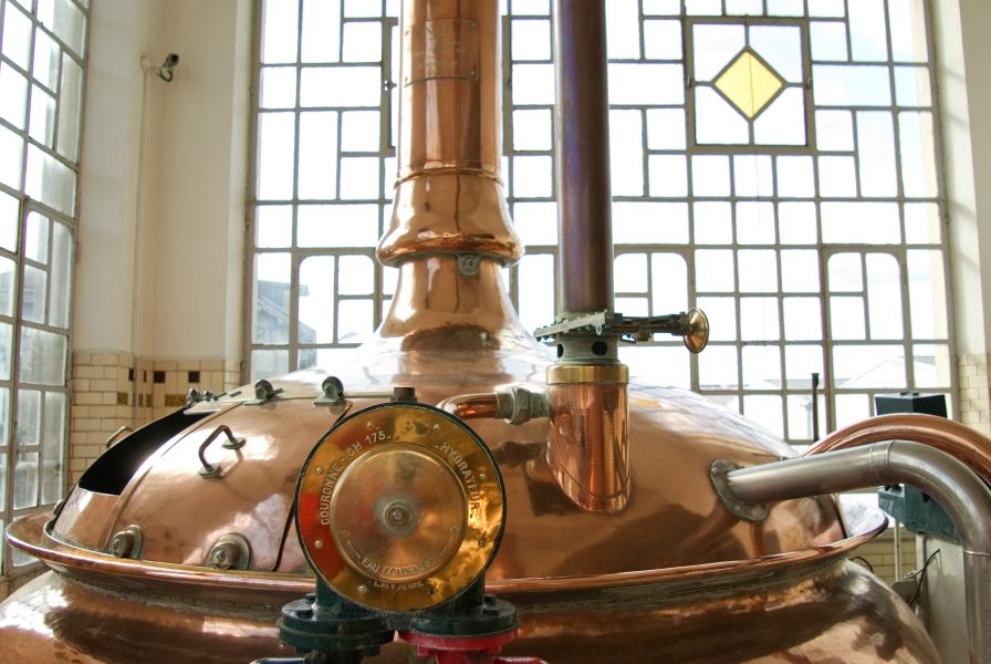 La visite se poursuit en redescendant les étages vers la salle de brassage (trois grandes cuves de cuivre) et ses « coulisses », la salle des machines, la salle des anciennes glacières.